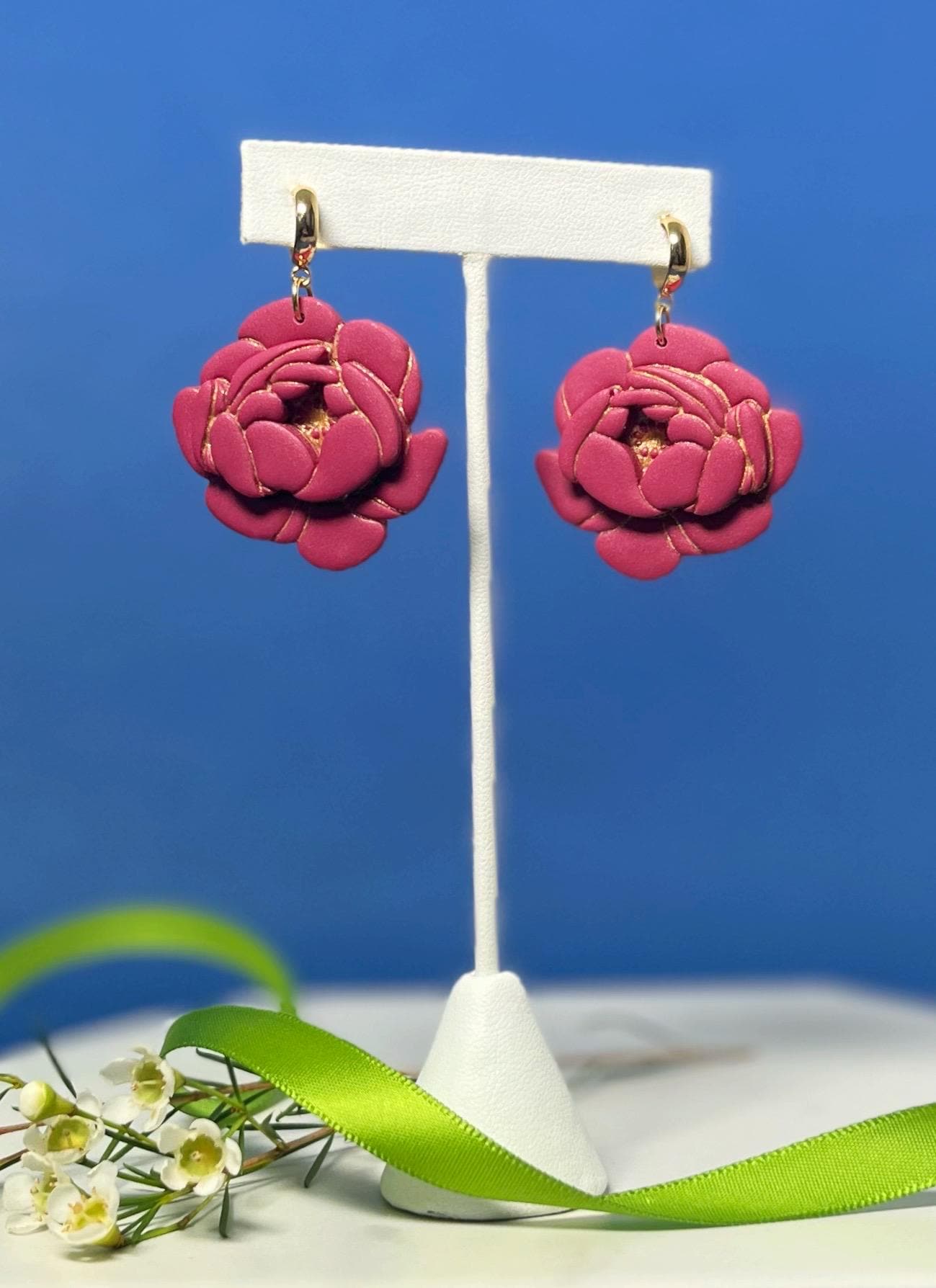 Peony Polymer Clay Earrings: Lightweight Floral Hoops, Multiple Colors Available