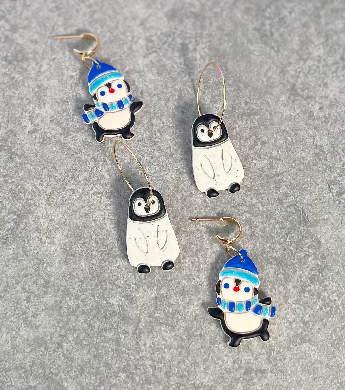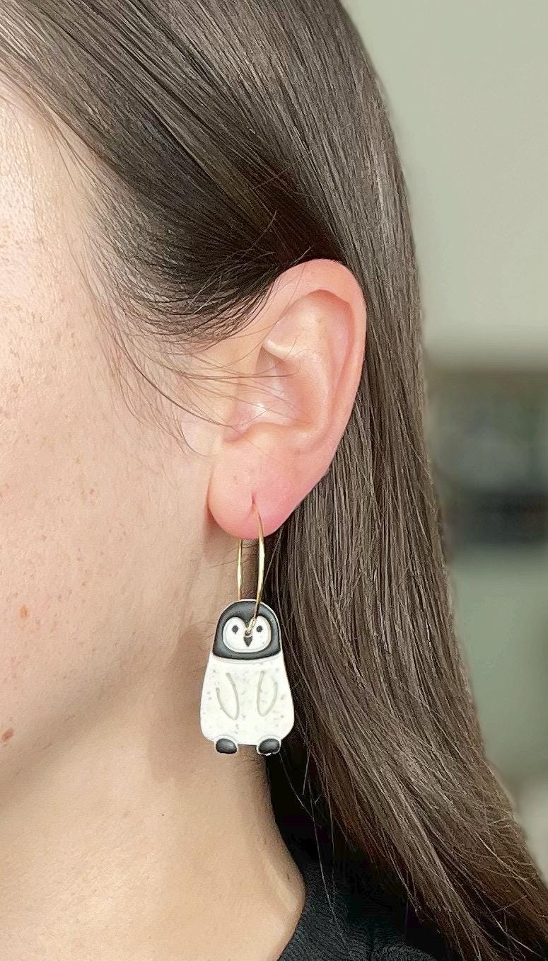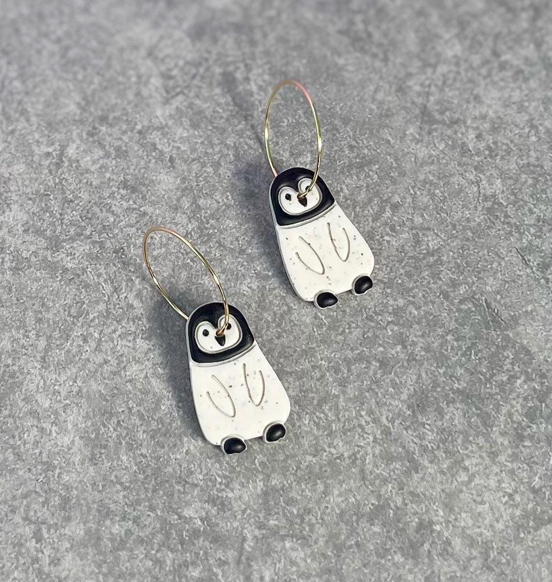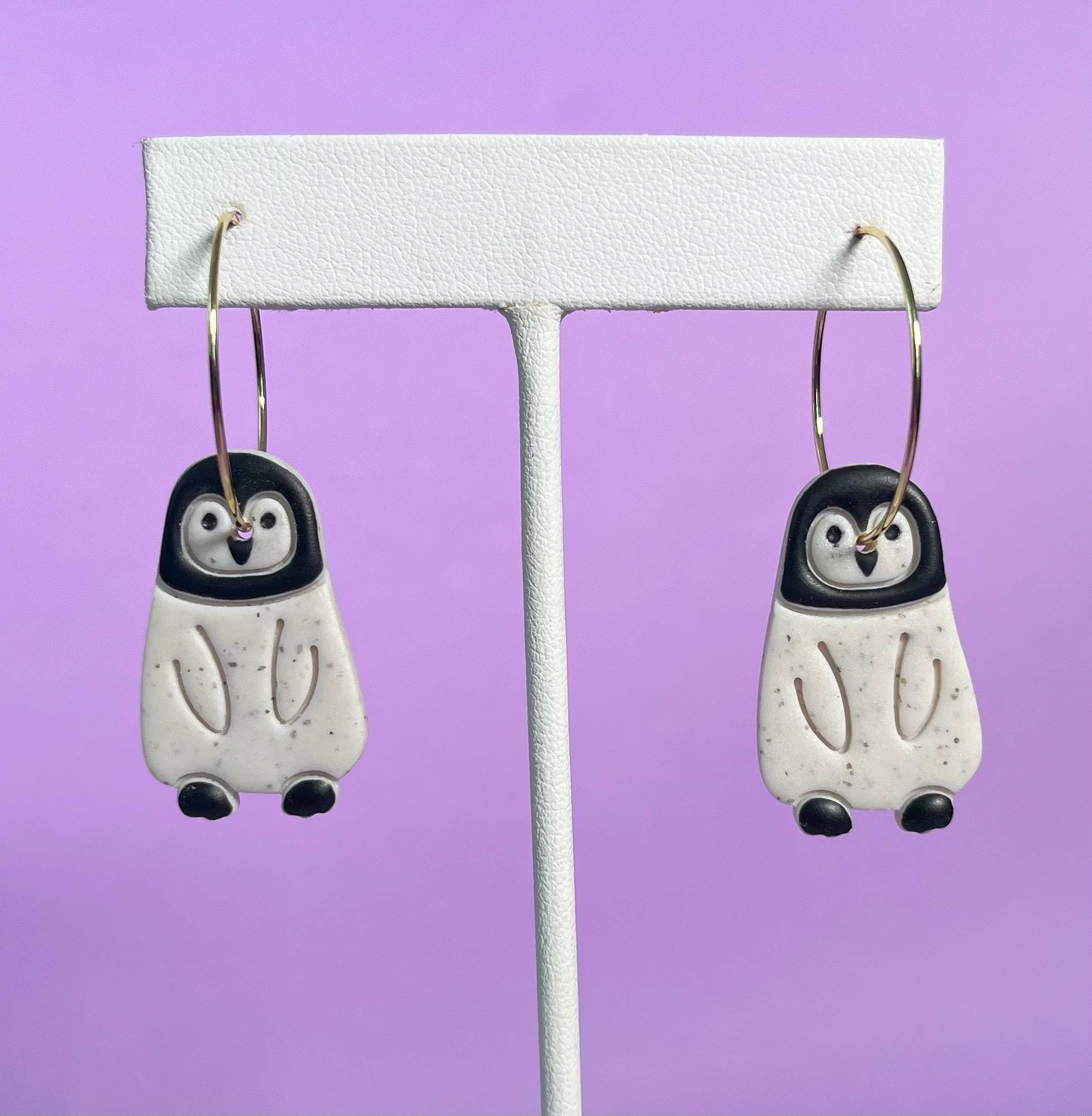 Show your love for one of the cutest cold weather animals, the baby emperor penguin, with these lightweight and whimsical hoops.