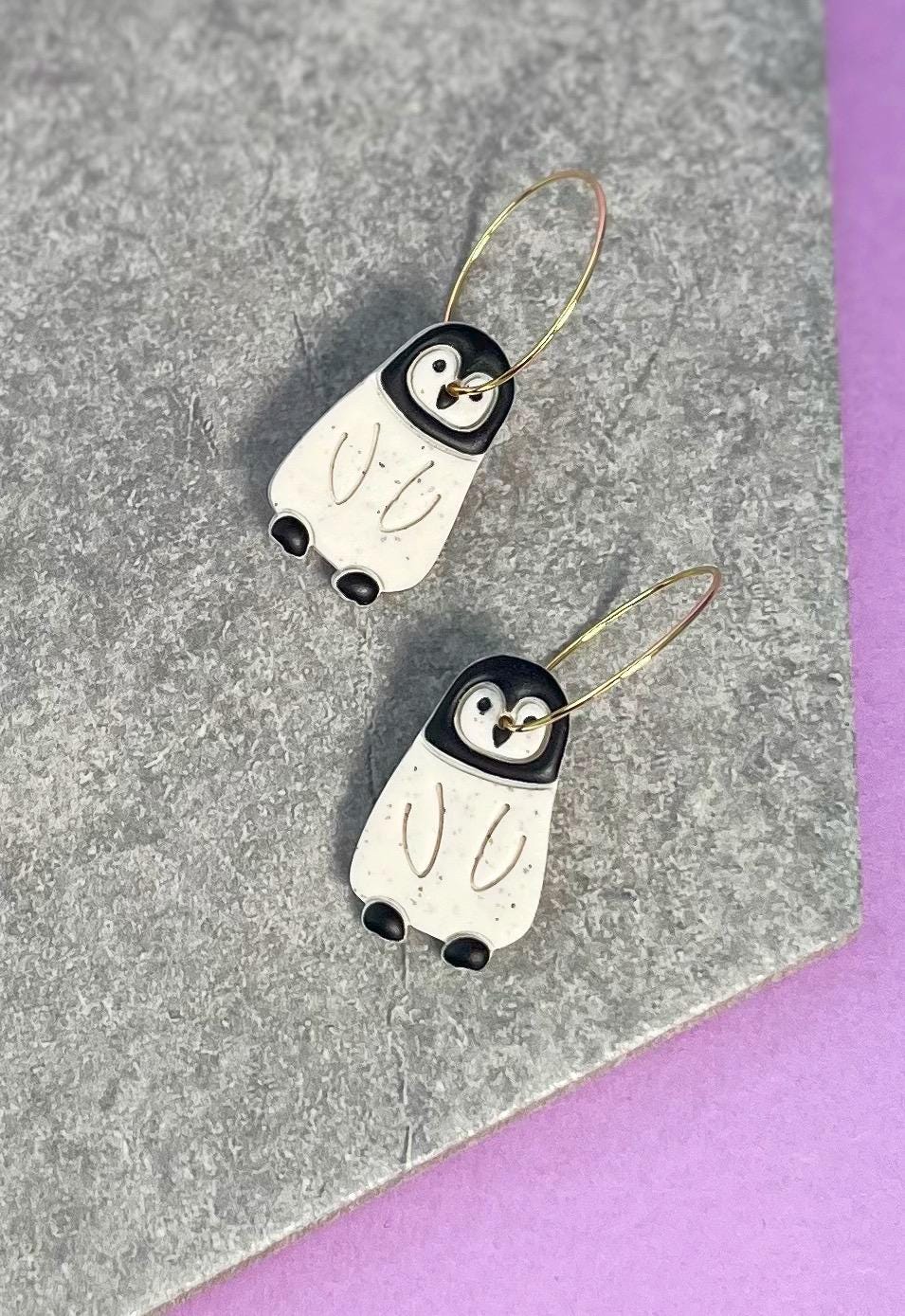 Handmade Baby Penguin Hoop Earrings: Hypoallergenic Gold Hoops