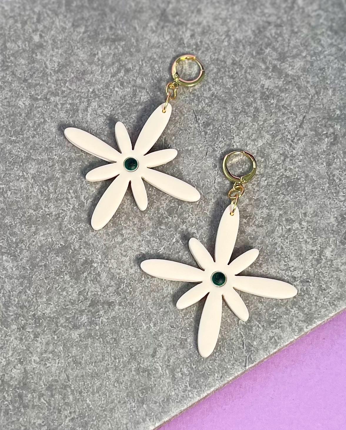 Adorn your ears with these delightfully retro florals! Shape designed by Libby Schwers, inspired by Mary Blair.