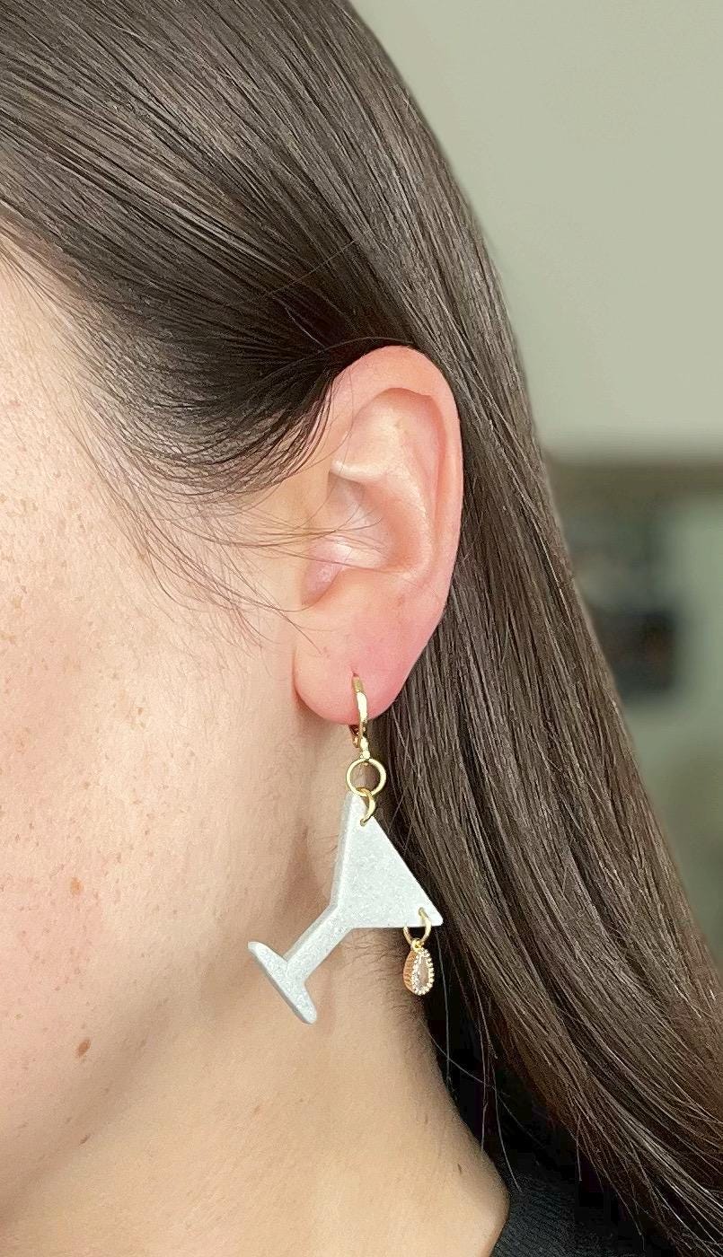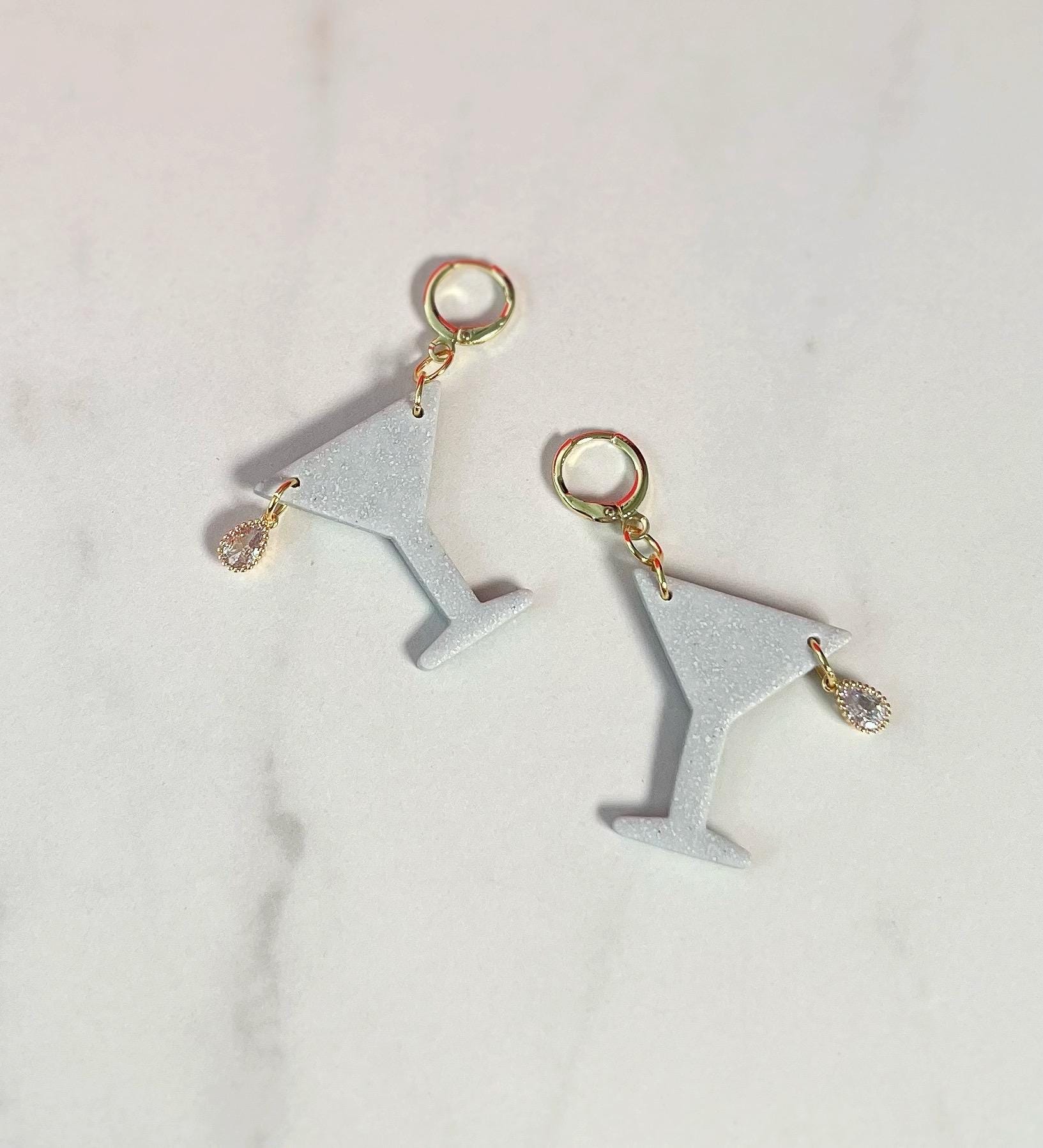 -Clay pieces featured: Silver glitter martini glass, teardrop gem gold charm