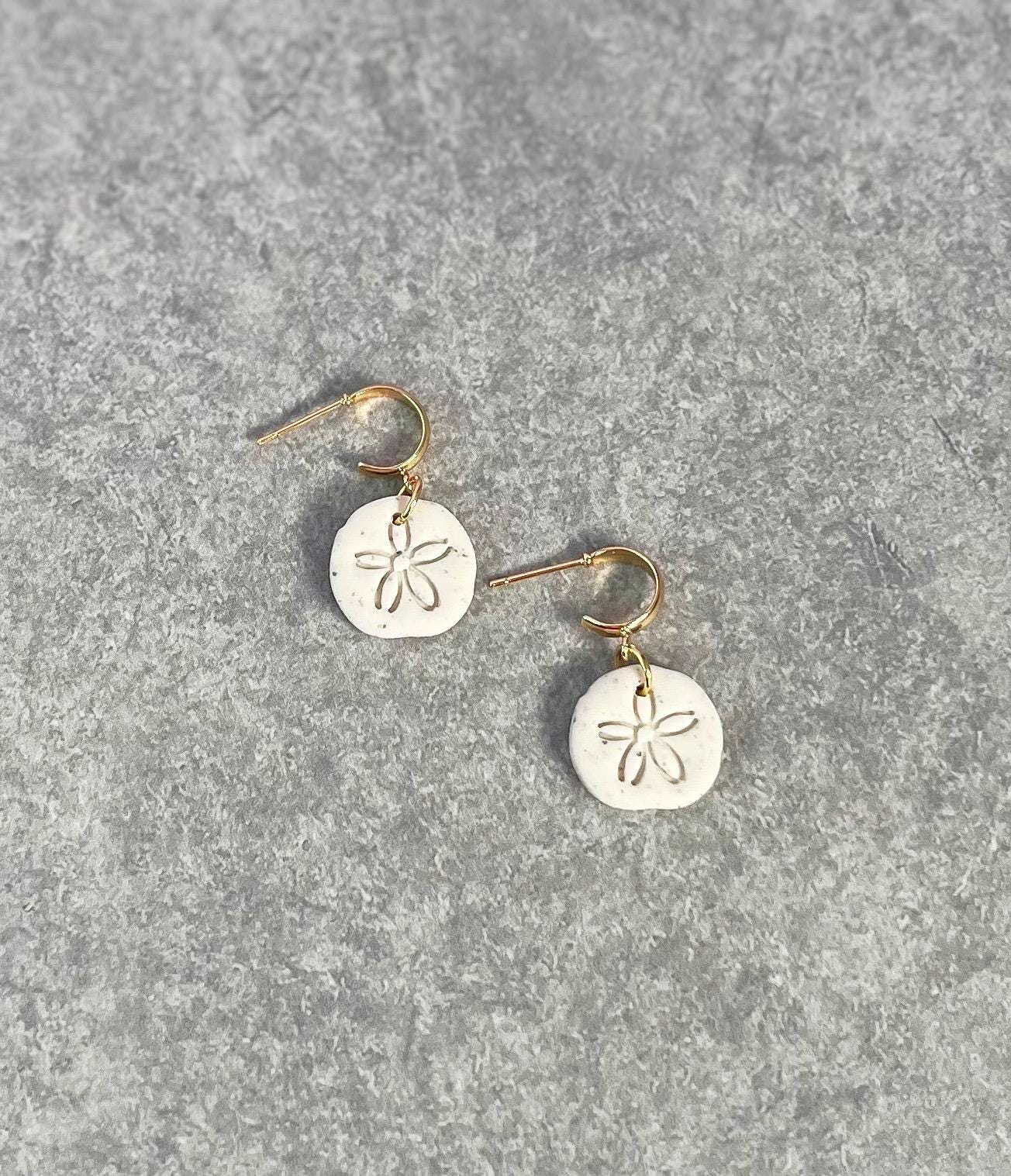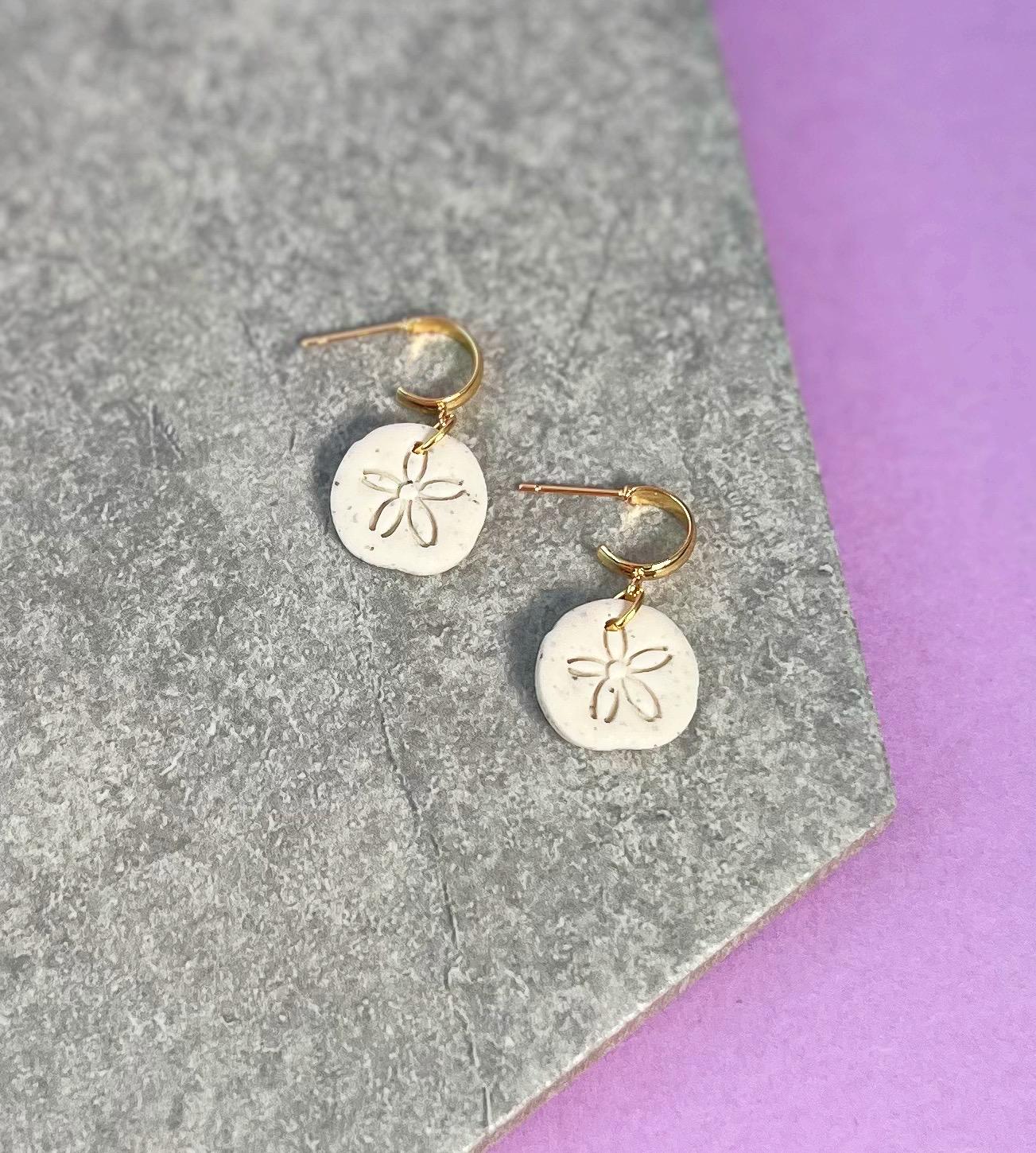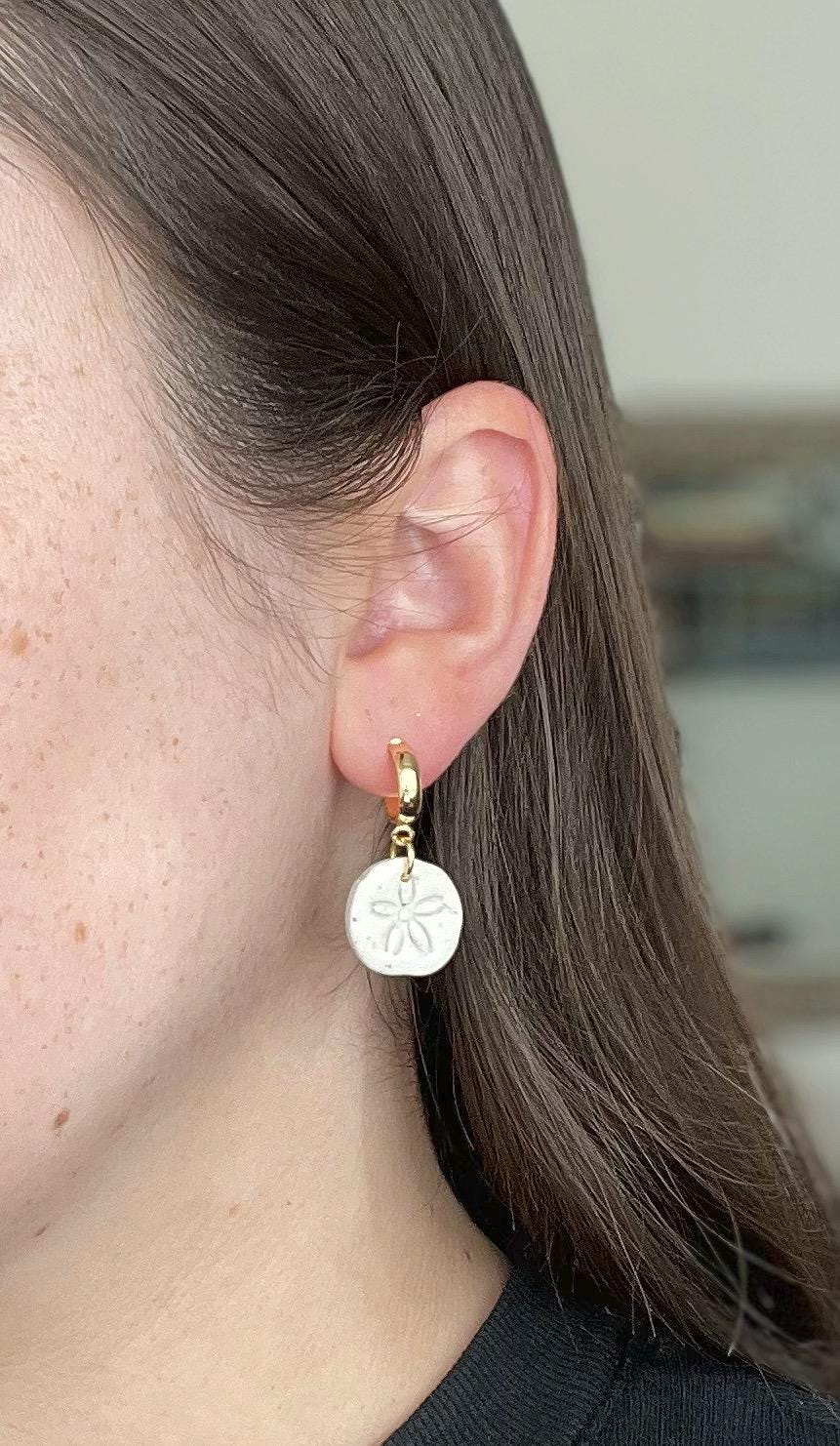 Sand Dollar Huggie Hoop Earrings, Cute Beachy Minimalist Hoops