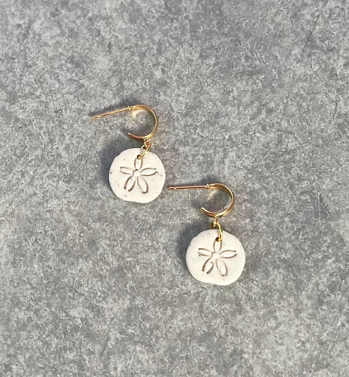 -Clay pieces featured: off white/gray speckled sand dollar shape
