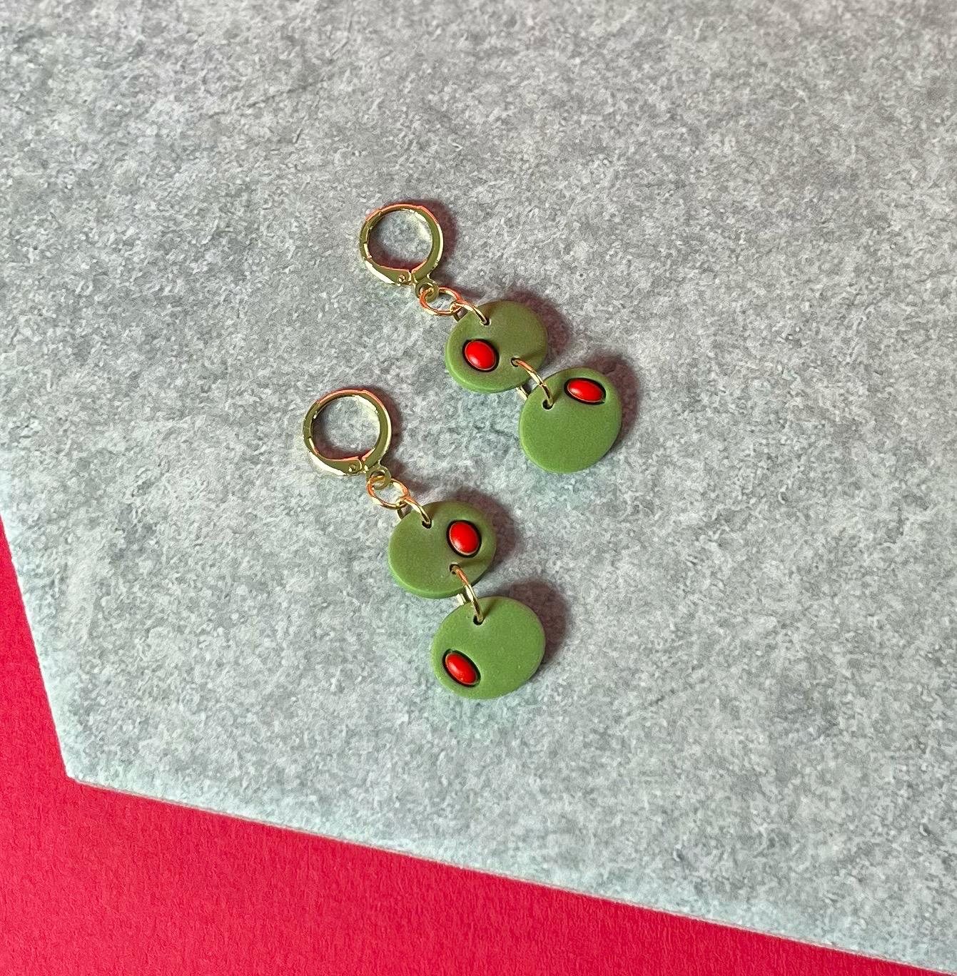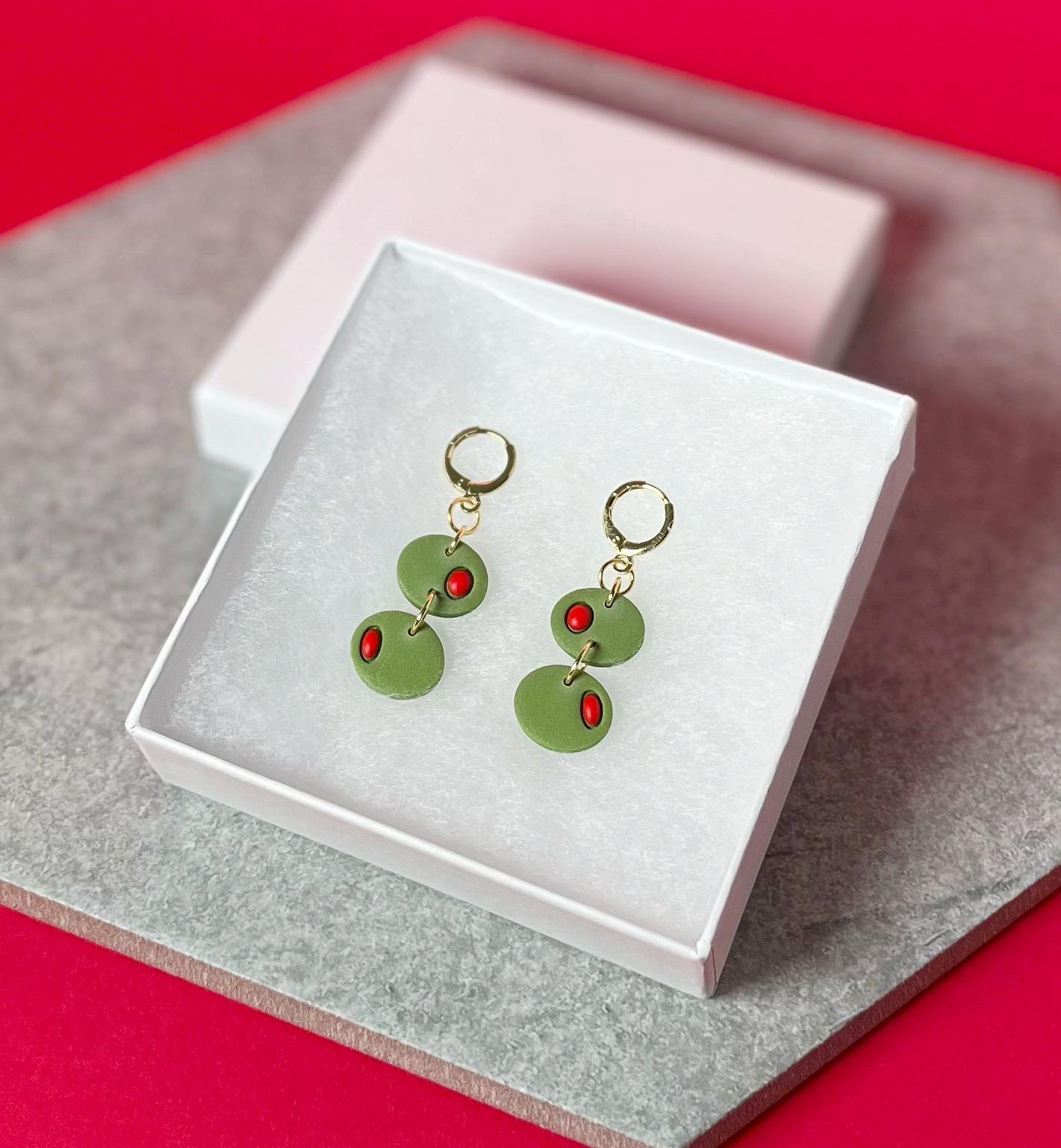 Olive Hoop Earrings, Polymer Clay Cute Food Jewelry, Minimalist Lightweight Hoops