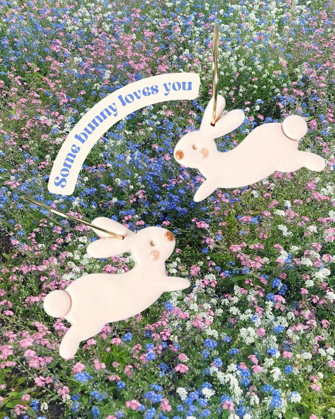 -Clay pieces featured: White bunny shape with light pink/bronze liquid clay detail