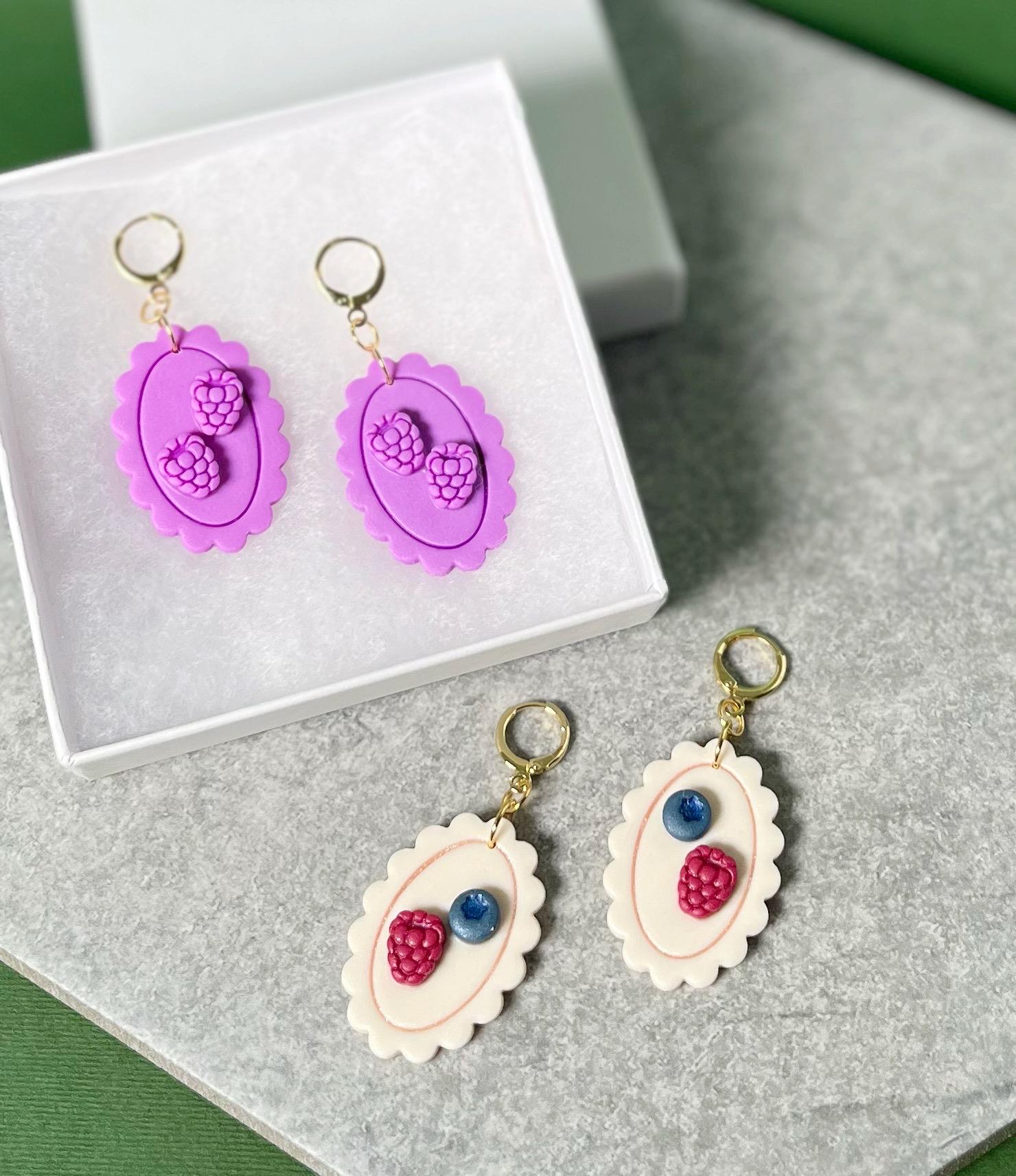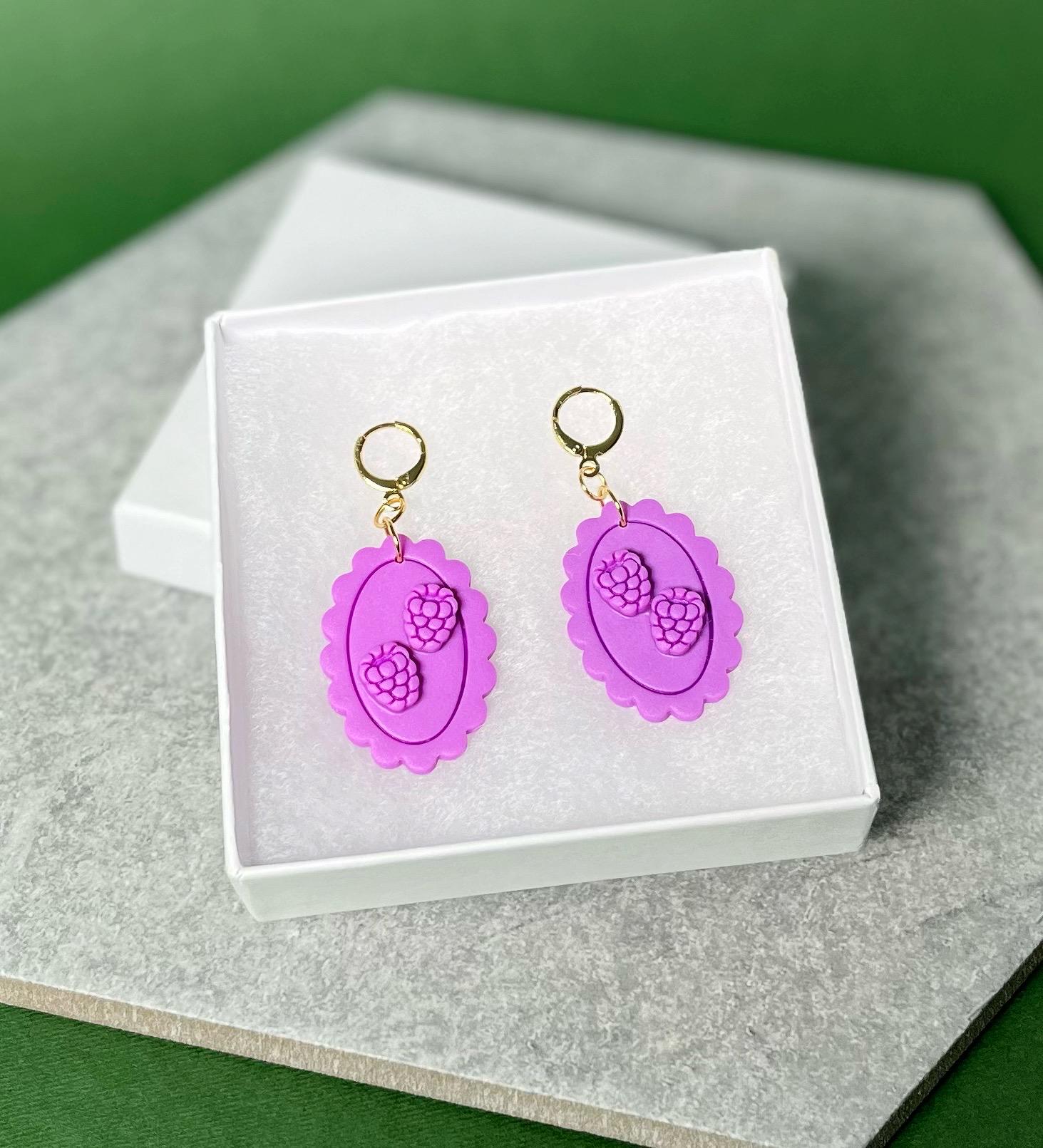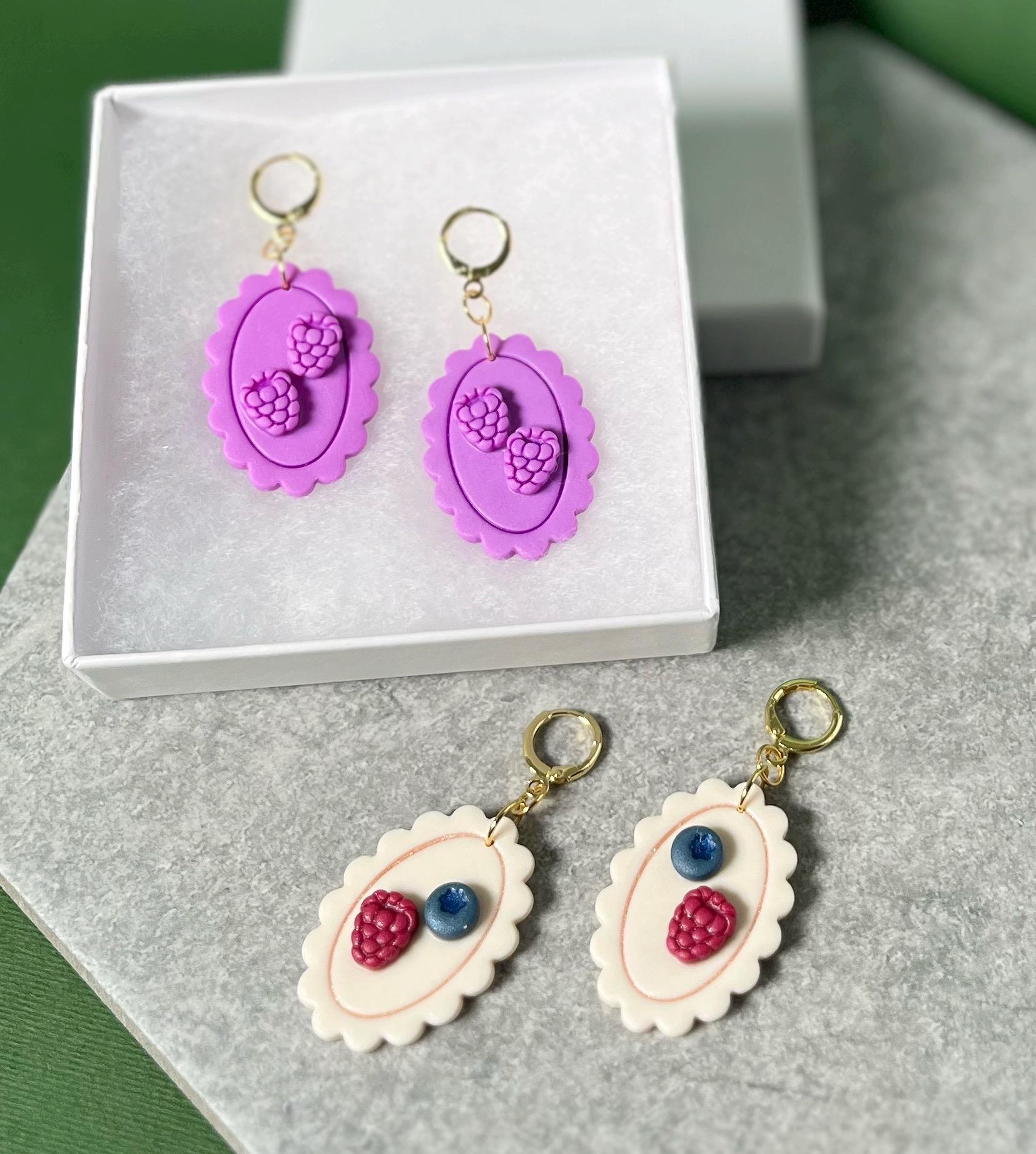 Berry Cute Cameo Earrings, Spring Berry Hoop Earring, Lightweight Polymer Clay Hoops
