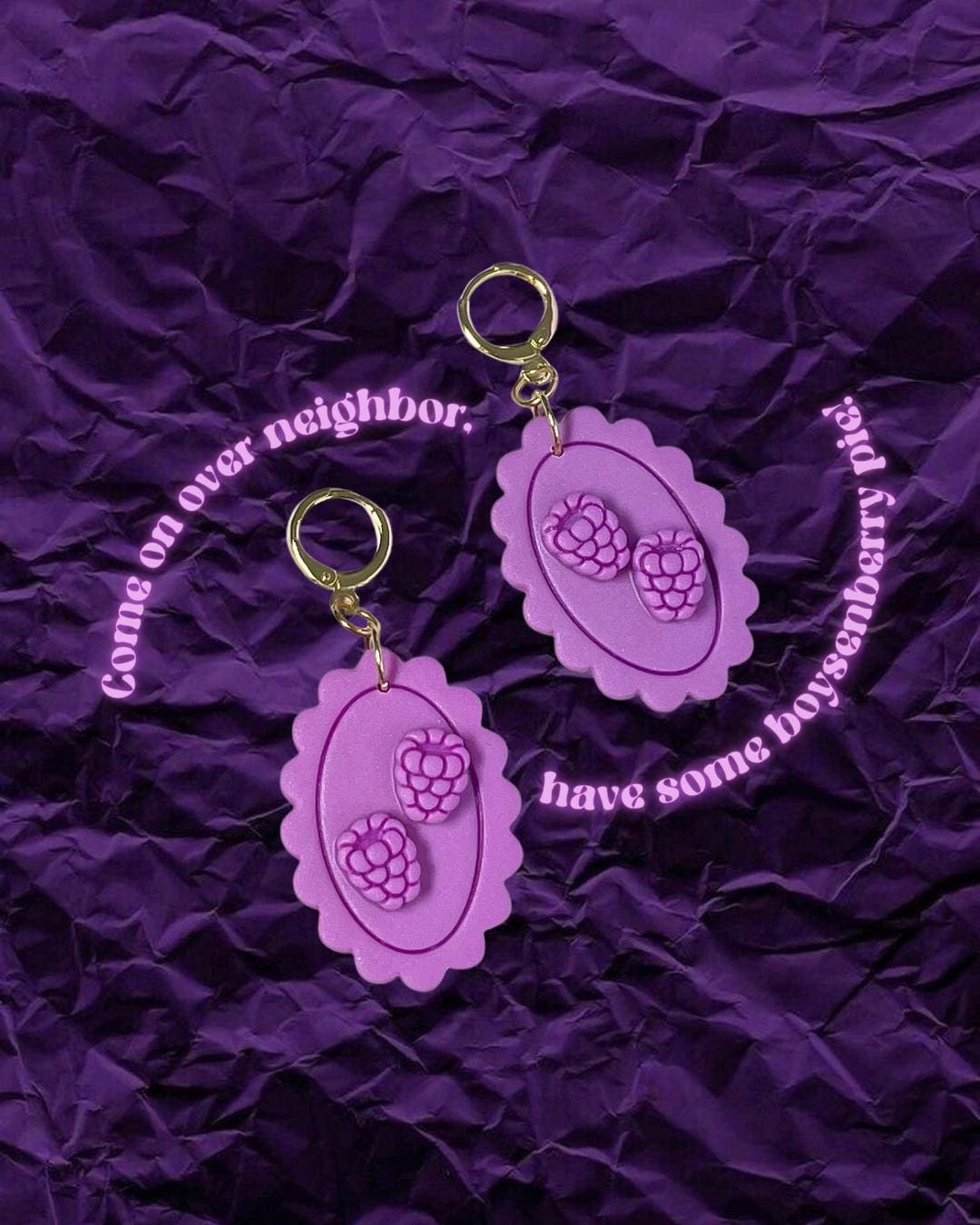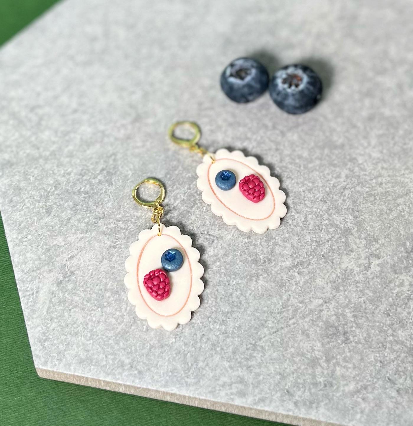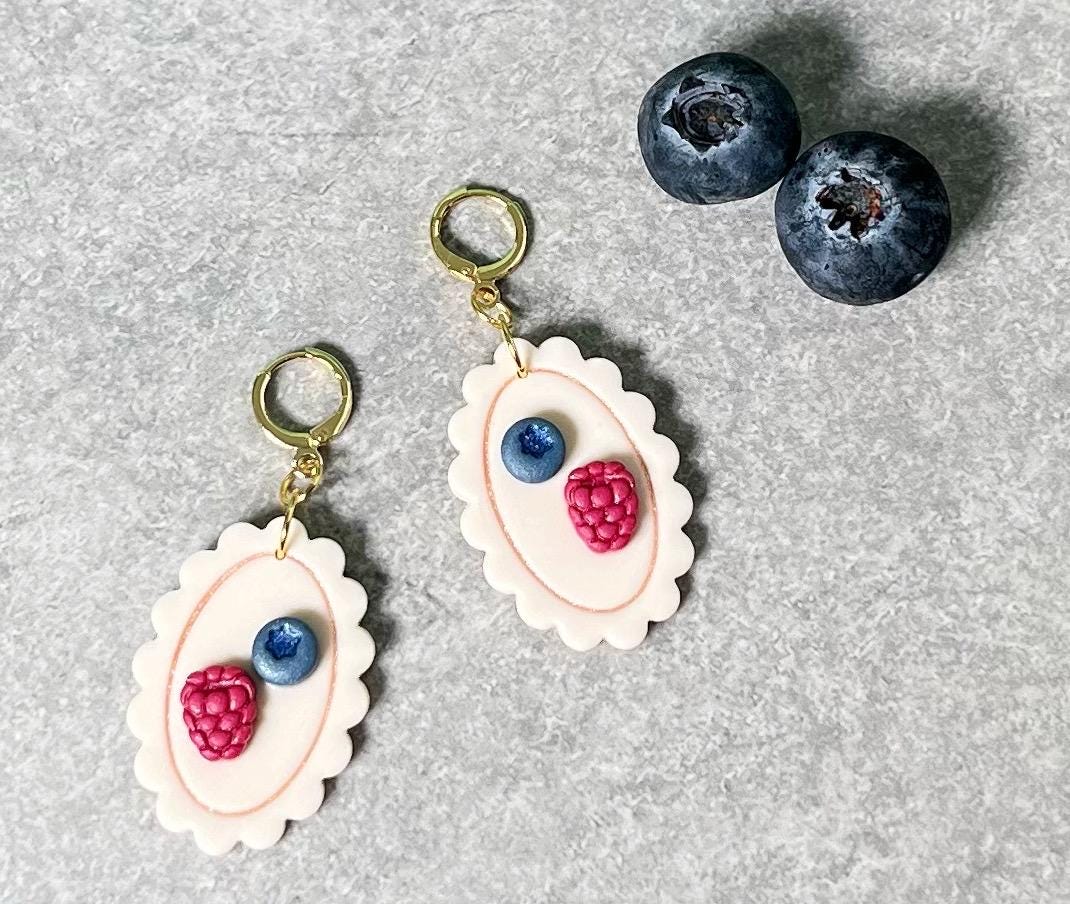 Berry Cute Cameo Earrings, Spring Berry Hoop Earring, Lightweight Polymer Clay Hoops